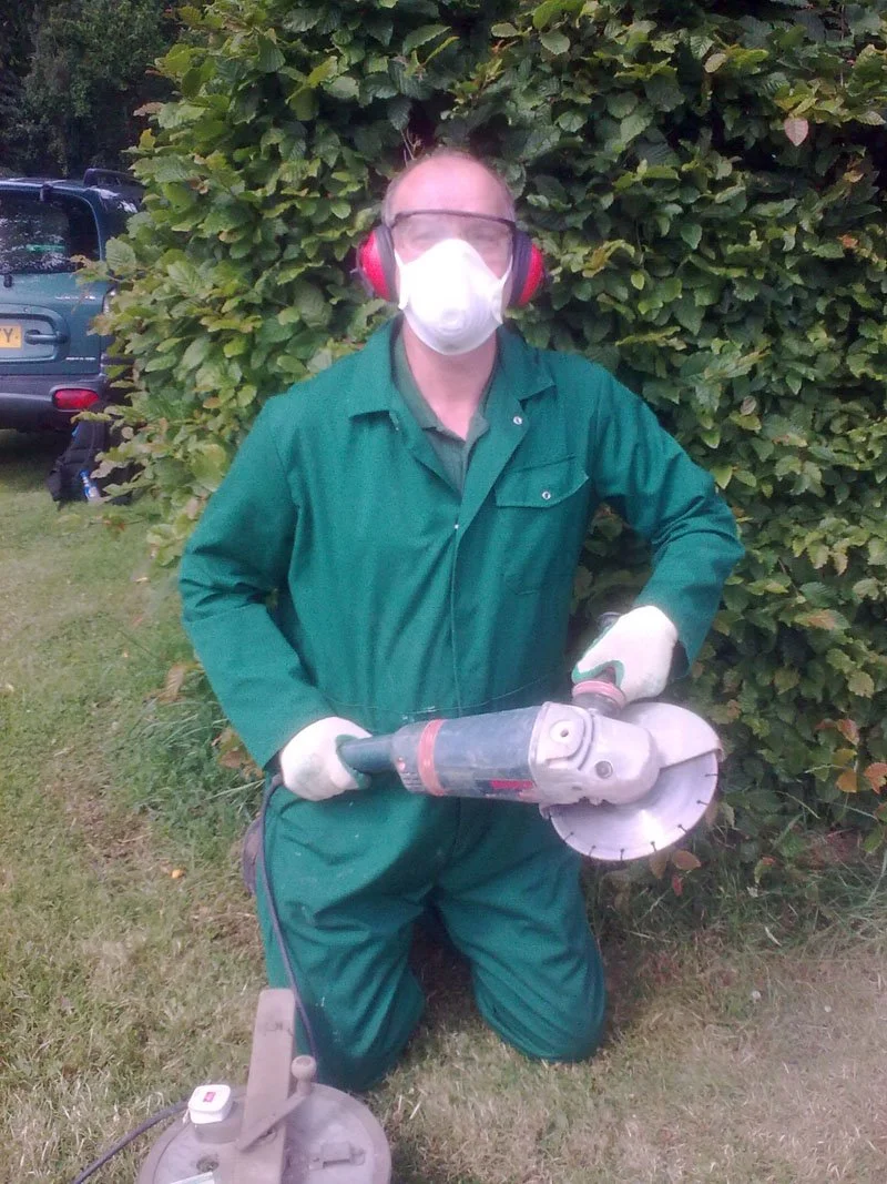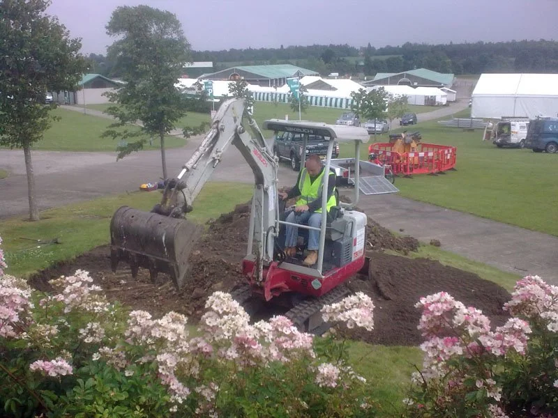 Keith with his mini digger - saving many hours of manpower, excavating the site