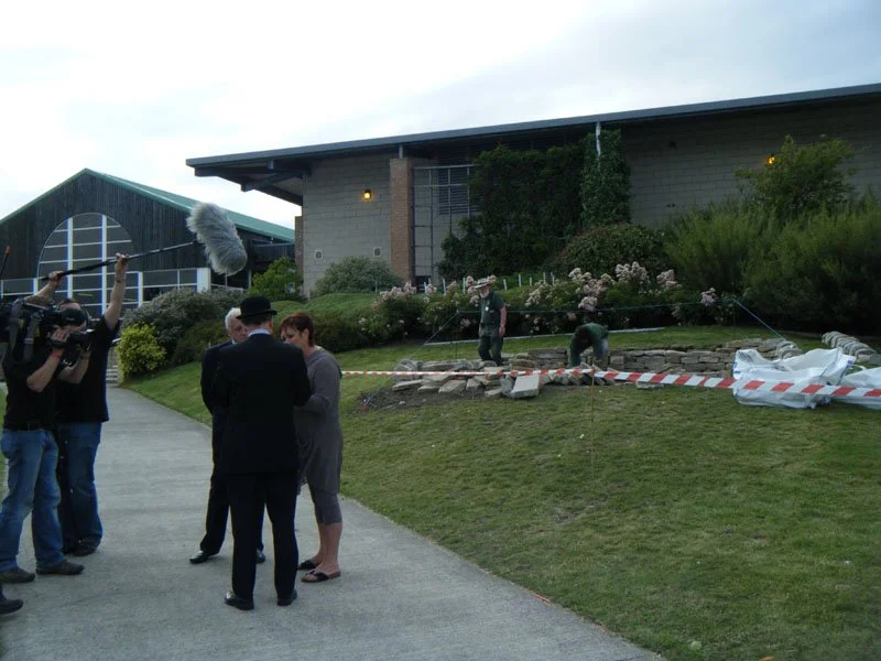 Almost. Bill Cowling appears on BBC Look North with two Guild members 'looking busy' in the background